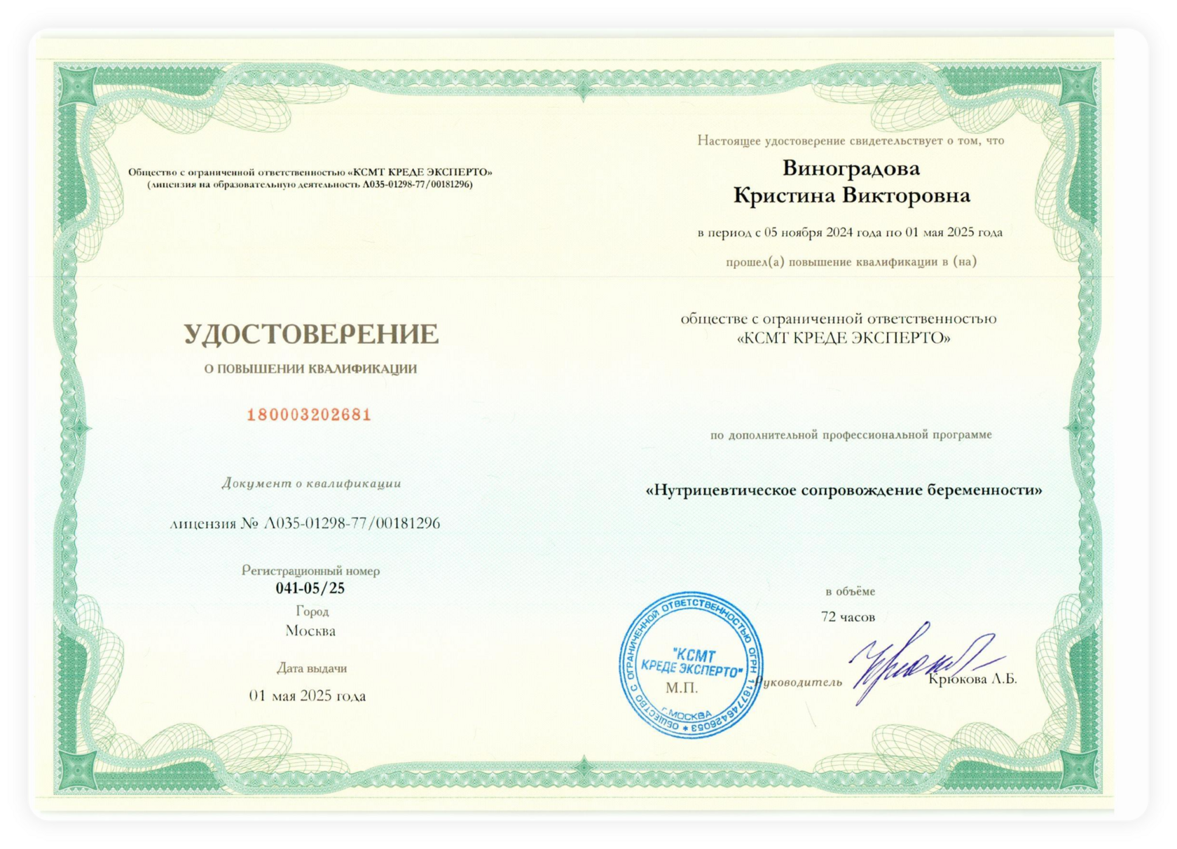 Я, Виноградова Кристина - нутрициолог, член Ассоциации нутрициологов и коучей по здоровью.